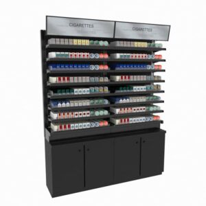 stores. Our best selling cigarette racks are 2ft and 3ft wide cabinets. Combine several cabinets together to fit most